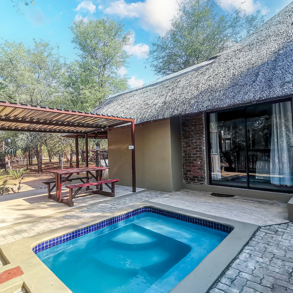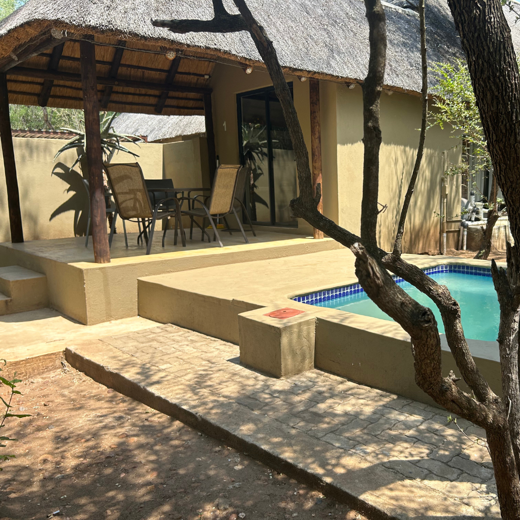 Guests can also enjoy a private splash pool, patio area, braai facilities, and a fully equipped kitchen, creating a comfortable home-away-from-home experience in Marloth Park.